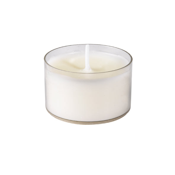 Värmeljus vit med 6 timmars brinntid. Ljusmassa i vegetabilisk olja med hållare i polycarbonate. Vegansk. Mått: Höjd 2,4cm, Diameter 3,9cm.