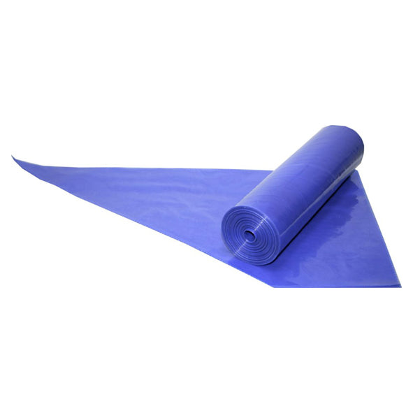 Blå engångsspritspåse på rulle tillverkade av COEX-polyeten i dispenserbox. För uppläggning och dekorering av mat och bakverk. Tjocklek 0,075 mm. Livsmedelsgodkänd. Återvinns som mjukplast.